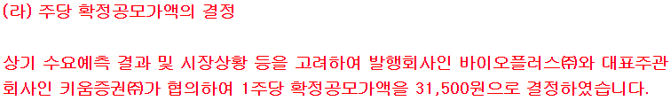 바이오플러스 공모 청약 시 상단기준 21.5%의 할인율을 적용하여 밴드를 산출했다. 나쁘지 않은듯. 공모가는 상단으로 결정되었다.