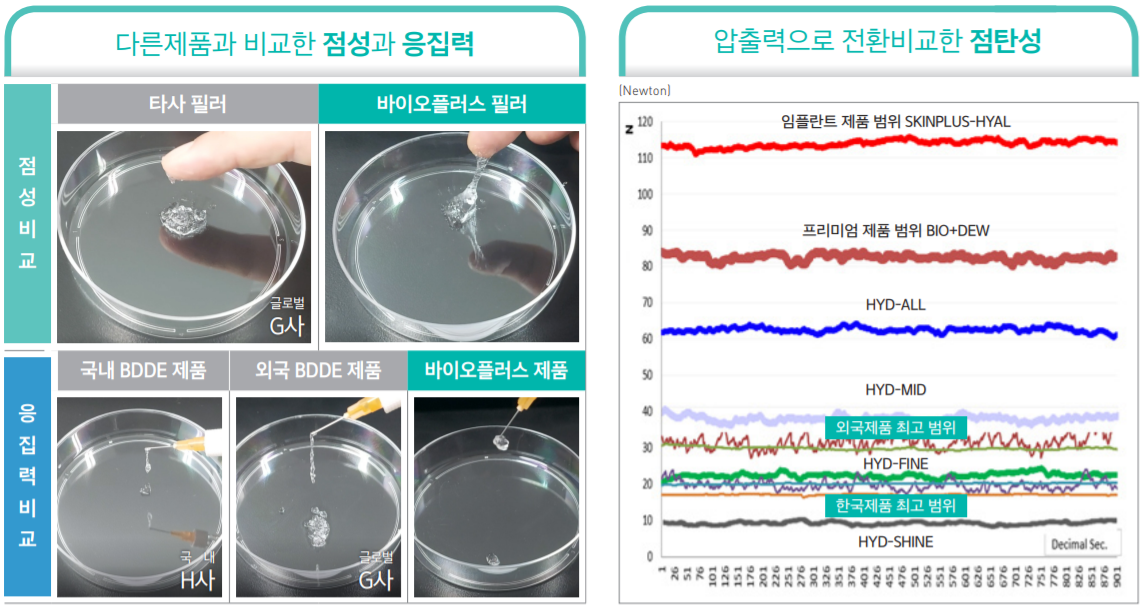 솔직히 전문가가 아닌 이상 봐도 잘 모르겠는데.. 히알루론산을 취급하고 정제하는데 있어서 제품의 기능과 지속력을 향상시키는 바이오플러스의 독자적 원천기술이라고 한다.