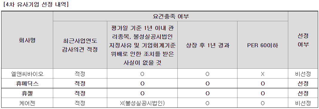 유사기업으로 휴메딕스, 휴젤 2개의 업체를 선정하였다.