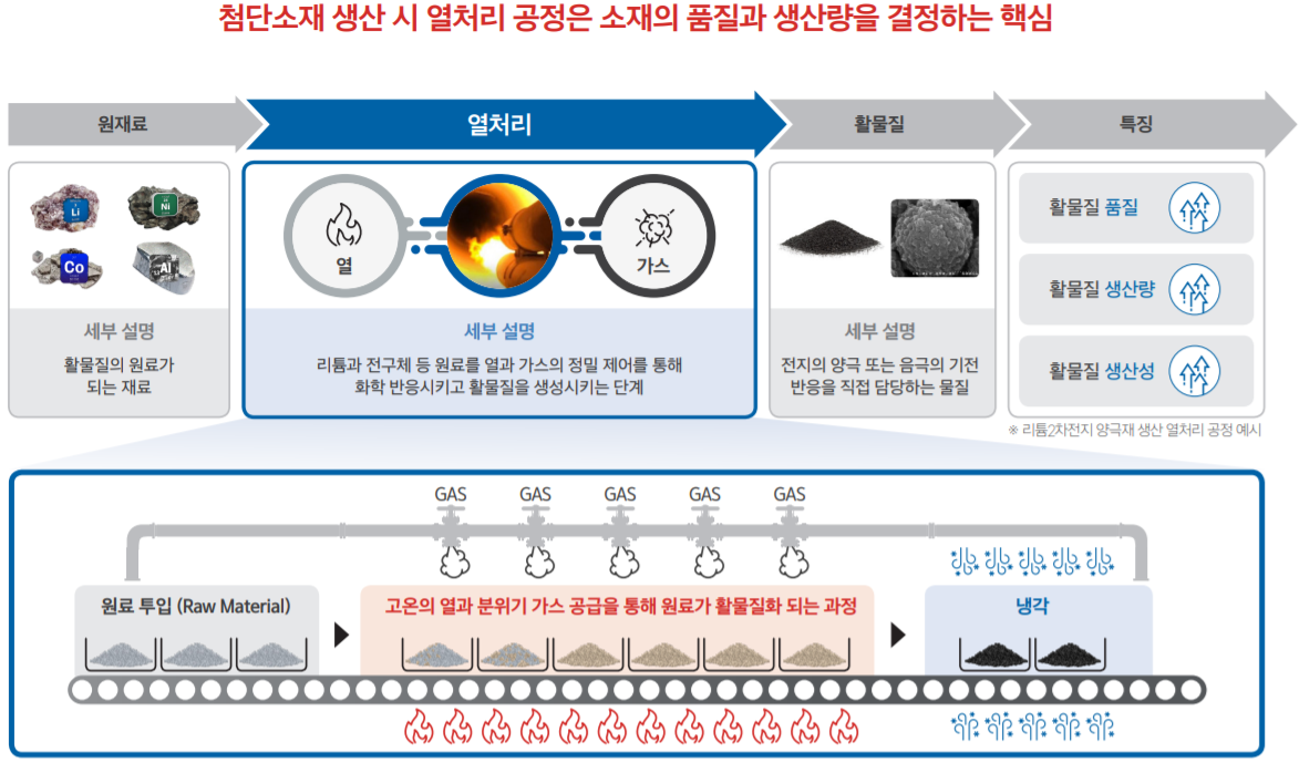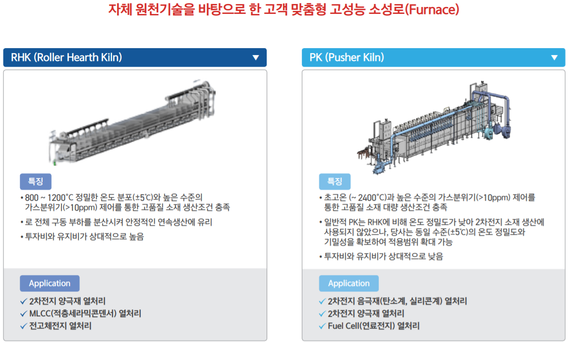 열처리 공정은 2차전지에 들어가는 배터리 양극재 및 음극재, 전고체전지, MLCC, 탄소섬유 등 고부가가치 첨단소재 개발 및 양산을 위한 필수 공정이다.