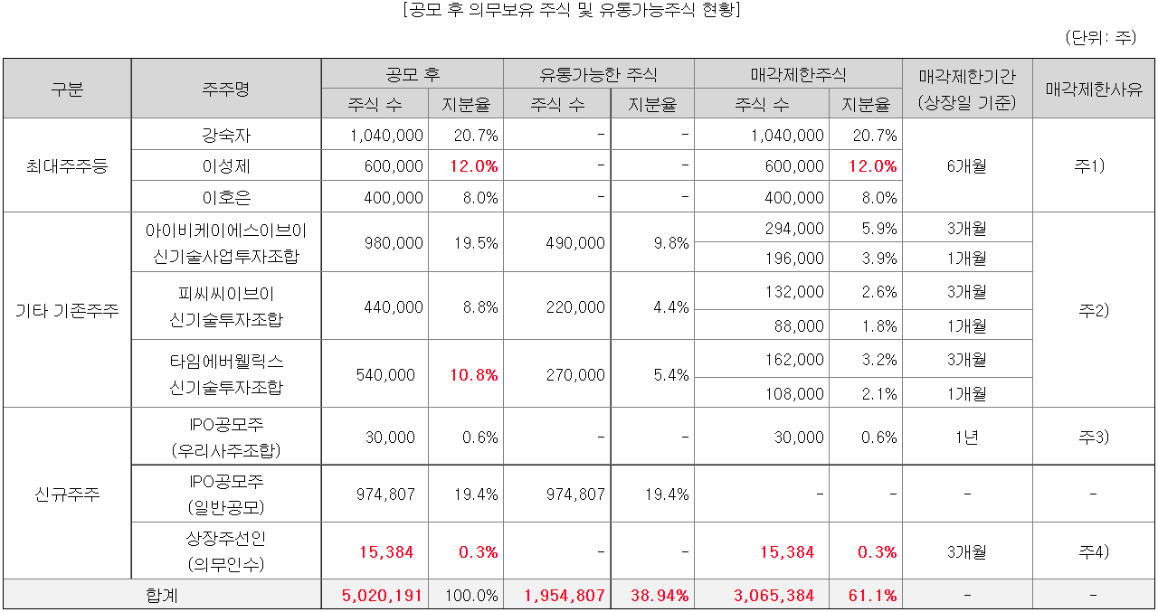 아마도 자신감은 여기서 나오지 않았을까 싶다. 의무보유 확약 비율이 44.3%이다. 대어급을 제외하고는 거의 최고 수준이라고 볼 수 있다.