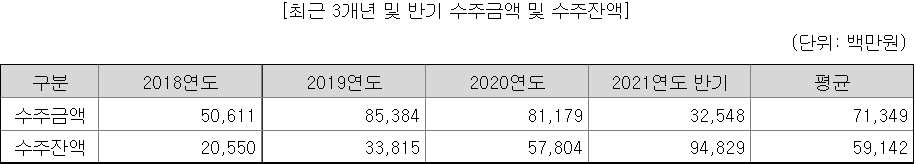 현재 수주잔액은 948억을 기록하고 있다. 아 물론 2021년도 반기 금액이라 연환산했다고는 한다. 수주금액이 적은 편인데, 전기차 시장 확대로 양극재/음극재 수요가 지속적으로 증가함에 따라 매출 개선을 전망한다고 한다.