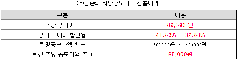 세상에나.. 원준 공모주 청약에서 가장 큰 희소식이다. 원준의 경우 증권 인수업무등에 관한 규정에서 정의하는 환매청구권 부여 대상이 아니지만, 일반투자자 보호를 위해 자발적으로 환매청구권을 부여했다고 한다. 어느정도 자신감의 표현일까? 투자자들 입장에서는 희소식이다.