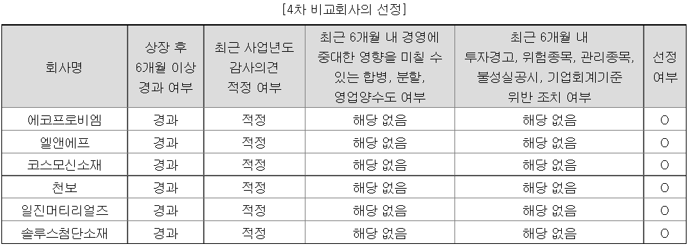 유사기업으로 에코프로비엠 등 6개회사를 선정하였다.