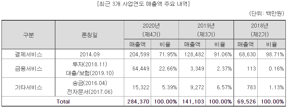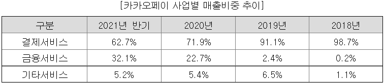 결제서비스 매출 비중은 여전히 높지만, 불과 3년만에 매출 의존도를 많이 떨어뜨렸다.