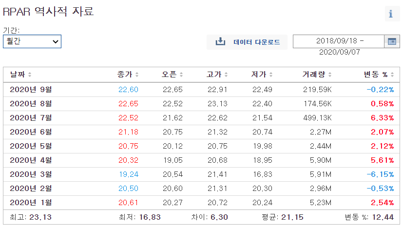 그래도 동기간 RPAR에 비하면 선방했다. 물론 연간 수익률로 보면 따라갈 수가 없지만..