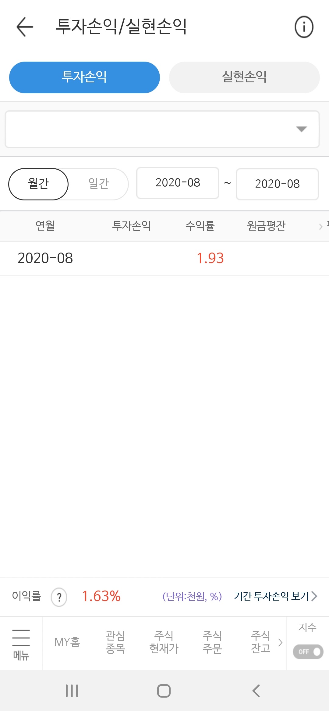 8월 수익률은 1.63%이다. 주식은 많이 올랐지만, 채권과 금이 좀 떨어졌다.