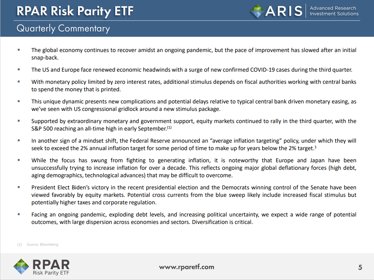RPAR은 분기마다 QUARTERLY REVIEW를 낸다. 작년 마지막 분기 리뷰를 간단 요약해보자.