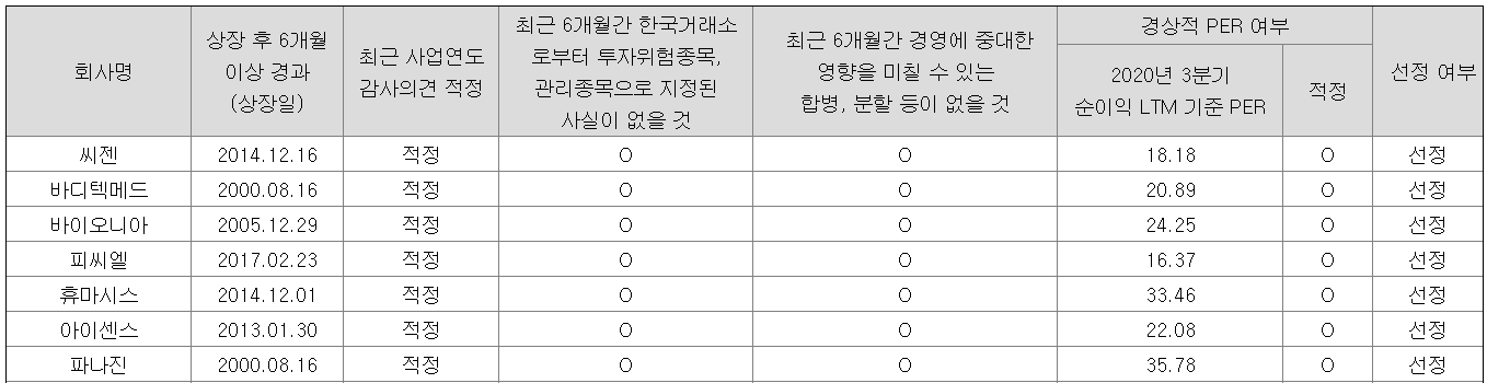 최종적으로는 위와 같은 7개 기업이 선정되었다.