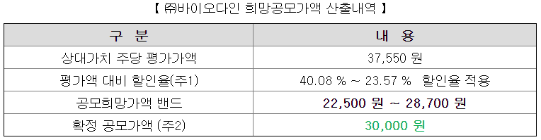이 정도면 바이오다인과 대신증권이 결정한 확정공모가액 30,000원이 굉장히 자비롭게 보일 정도..
