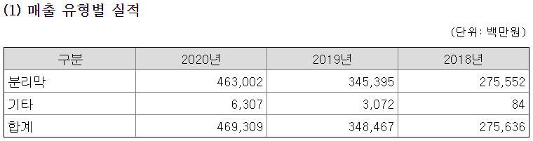 SK IET의 현재 대부분의 매출이 이 분리막에서 나오고 있다. 2020년 기준 분리막 매출은 4630억에 이른다. 매년 큰 폭의 매출 신장세가 있었으며, 2020년 기준 34%의 매출 증가를 이룩하였다.