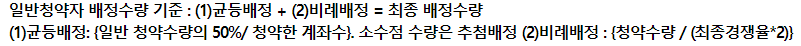 50% 균등배정, 50% 비례배정으로 비례배정 청약에 유리하다.