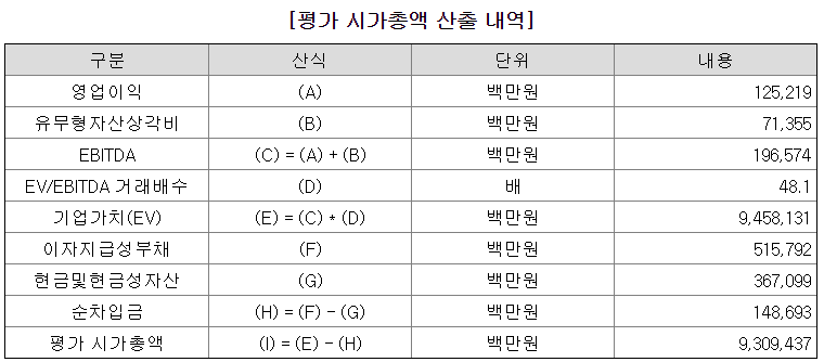 유사기업 선정 분석에 앞서, 일반적인 PER 분석이 아닌 EV/EBITDA 방식을 적용하여 기업가치를 산정하였다.