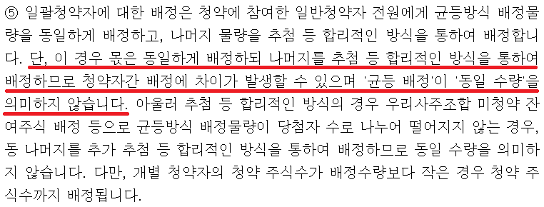 즉, 50% 균등배정, 50% 비례배정으로 비례배정 청약에 유리하다.
