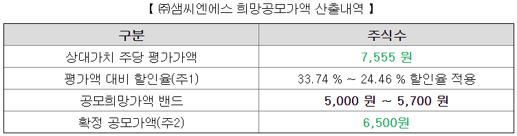 여기에 공모가 밴드 상단 기준 24.46%의 할인율을 적용하였는데, 확정 공모가가 6,500원으로 결정되면서 실제 할인율은 13.9% 정도로 결정되었다. 공모가 상단 대비 800원이나 올린 결정은 좀 아쉽다.
