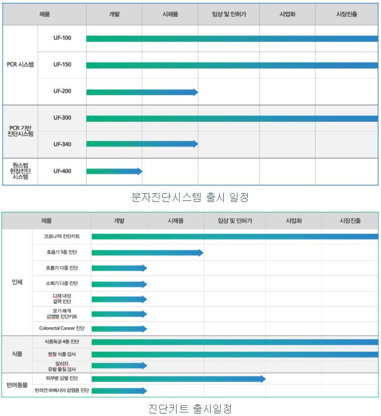 유전자 증폭 분자진단 시스템과 코로나19 진단키트를 필두로 간단한 자가검사가 가능한 진단키트 파이프라인을 다수 보유 중이다.
