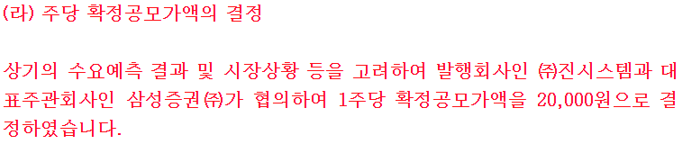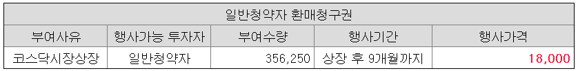 특례상장에 따른 환매청구권이 부여되었다. 그래도 쿠션이 있으니 좀 도전해볼 만한가..? 환매청구권 행사기간이 일반적으로 상장 후 6개월까지인데 반해 진시스템은 상장 후 9개월까지로 설정되었다.