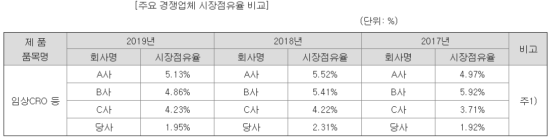 인바이츠바이오코아는 임상 CRO 매출 비율이 2020년 기준 전체의 69%에 달한다. 에이디엠코리아가 국내 임상 CRO업계에서 순이익 기준 1위라고 투자설명서에 써놨던데, 올바른 비교는 아니다. 만약 이마트가 영업상황이 악화되어 적자전환을 했다고 해서, 흑자인 동네 슈퍼가 업계 1위가 될 수는 없는 일이다. 매출 기준으로는 드림씨아이에스 또는 인바이츠바이오코아를 업계 1위로 보는 게 타당하다.