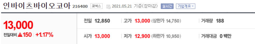 인바이츠바이오코아. 현재 코넥스 상장기업이며, 작년 7월 SKT에서 설립한 인바이츠 헬스케어에서 인수하여 사명이 바이오코아에서 인바이츠바이오코아로 변경되었다.