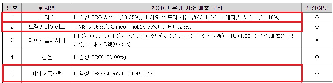재무 유사성, 사업 유사성(CRO 관련 매출 30% 이상) 등의 선정기준을 거쳤다. 선정과정이 조금은 아쉬운데,