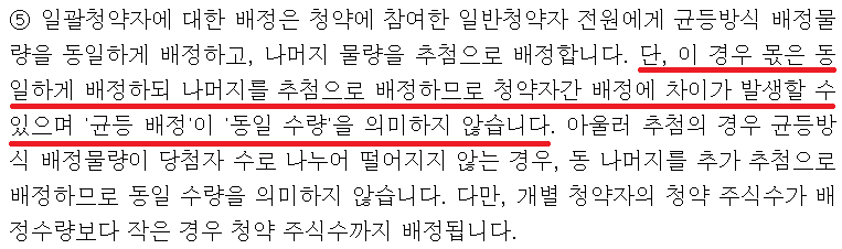 즉, 50% 균등배정, 50% 비례배정으로 비례배정 청약에 유리하다.