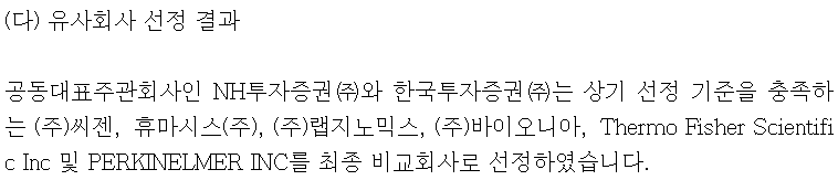 유사기업으로 씨젠, 휴마시스 등 총 6개사를 비교회사로 선정하였다.
