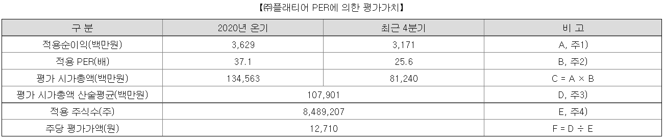 2020년과 최근 4분기를 기준으로 각각 시가총액을 산출한 뒤에 산술평균해서 주당 평가가액을 계산하였다. 주당 평가가액은 12,710원.