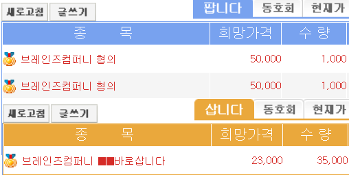 38커뮤니케이션 기준 브레인즈컴퍼니 장외가는 형성되어 있지 않다.